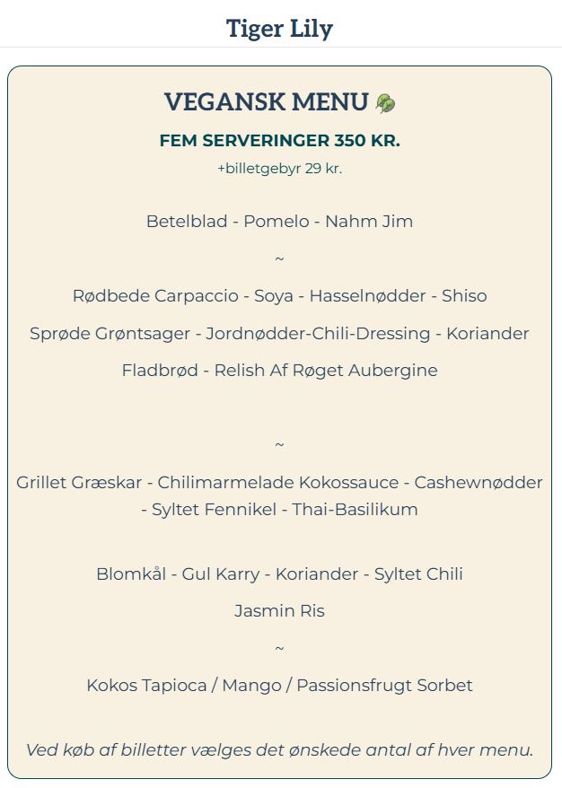 Dining Week – bordet er bestilt hos Tiger Lily, der laver en lækker vegansk menu